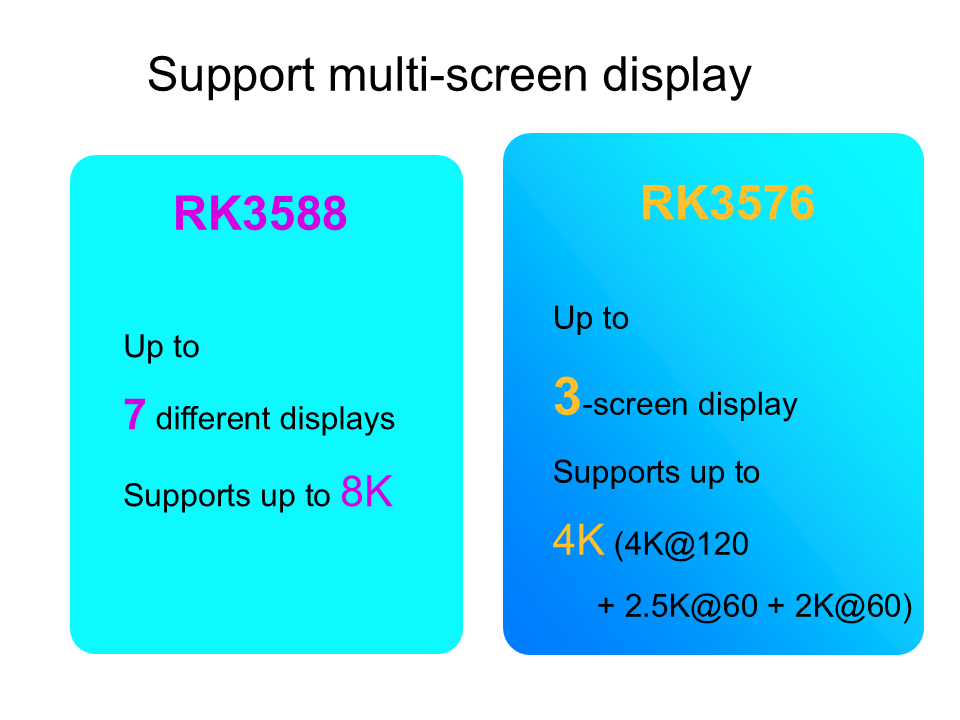 RK3588 a RK3576 podporujú viacero obrazoviek a rôzne bežné rozhrania displeja.