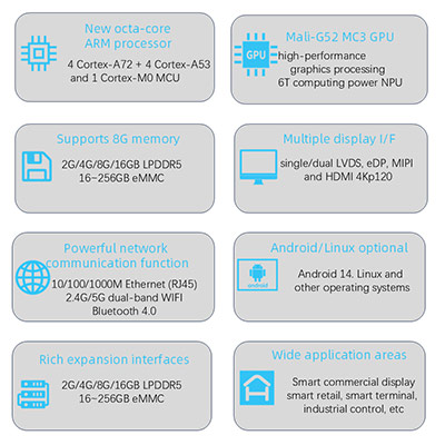 TP-3 RK3576 Jednodulárny počítač-založený na RockchiPRk3576, hlavná frekvencia môže dosiahnuť až 2,2 GHz, integrovaný štvorjadrový Cortex-A72 + štvorjadrový procesor Cortex-A53 a Mali-G52 MC3 Image procesor, vstavaný nezávislý NPU, výpočtová sila môže dosiahnuť 6 stopov, čo umožňuje rôzne scenáre AI.