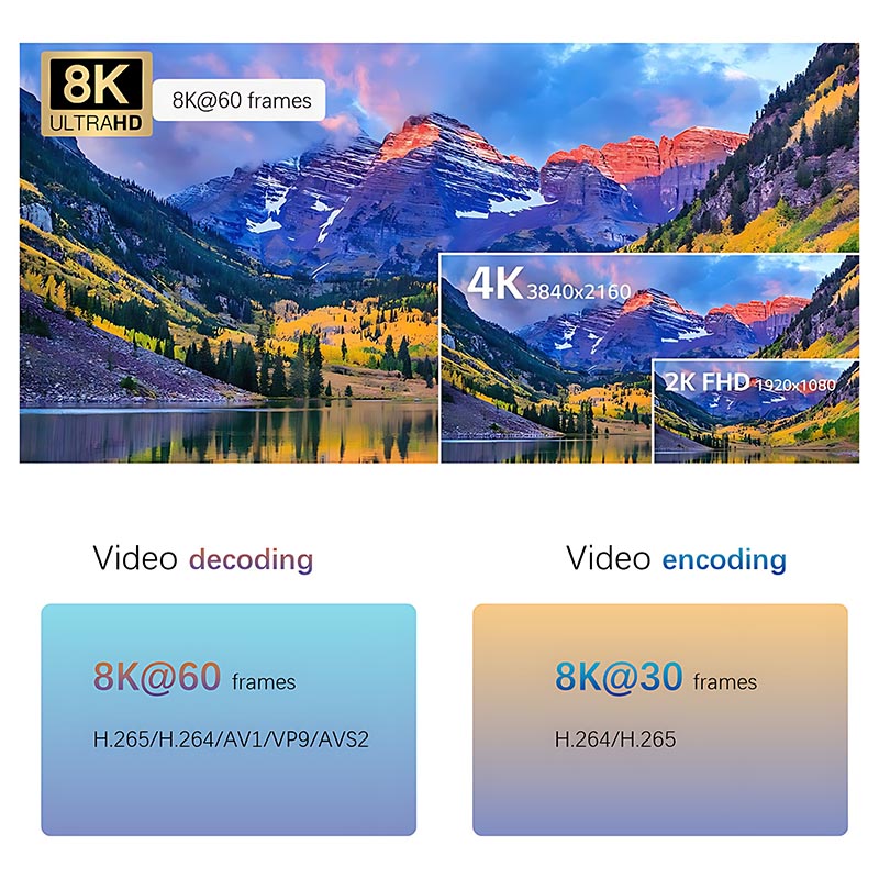 ● Kódovanie a dekódovanie videa 8k, výstup 8K zobrazuje
